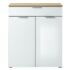 Commode « Paris », 1 tiroir (charge max. 10 kg), 2 portes, derrière 1 étagère réglable (charge max. 10 kg), étagère supérieure et inférieure charge max. 15 kg, façades en verre, poignées de bord en métal chromé, sur 4 patins de meuble argentés, surface en revêtement de résine de mélamine, avec chants ABS, tiroir avec fermeture automatique, avec amortisseur de porte, revêtement en verre de sécurité trempé