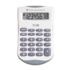 Calculatrice de poche « TI-501 », écran LCD à 8 chiffres et 1 ligne, fonctions : calculs de base / calcul des pourcentages / arrêt automatique, alimentation : pile, dimensions (L/P/H) : 5,8 / 9,1 / 0,8 cm, poids : 80 g, matériau : plastique, livrée avec 1 pile bouton