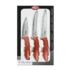Lot de couteaux 3 pièces, composé de : un couteau à légumes (11 cm), un couteau universel (13 cm) et un économe (11 cm), inoxydables et lames dentées, poignée en plastique avec Microban (antibactérien), couleur des poignées : rouge, livrés dans une boîte