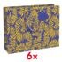 Set van 6 geschenkzakken »Liwa« 37,3x11,8x27,5 cm, decoratieve zak voor het vervoeren en overhandigen van geschenken, zak kan meerdere keren worden gebruikt, met koord handvat, oriëntatie: liggend formaat, motief: bladeren, materiaal: kraftpapier (gecoat), papiergewicht: 210 g/m², kleur buitenopdruk: blauw / geel, afmetingen (B/D/H): 37,3 x 11,8 x 27,5 cm, leveringsomvang: 6x geschenkzakken