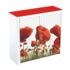 Kast met roldeuren motief rode bloemen, uitvoering: lamellen met design, 2 metalen planken in 8 cm raster te verstellen (draagkracht 75 kg), 2 ordnerhoogtes, capaciteit per plank: 11 ordners (rugbreedte 7,5 cm), 10 archiefdozen (rugbreedte 8,0 cm), met inrichting voor hangmappen en te bedekken greep-openingen, slot: cilinderslot, materiaal: body van metaal en kras- en stootvast polystyreen, roldeuren van polypropyleen, lamelbreedte: 15 mm, levering: in onderdelen, in elkaar zetten zonder gereedschap mogelijk